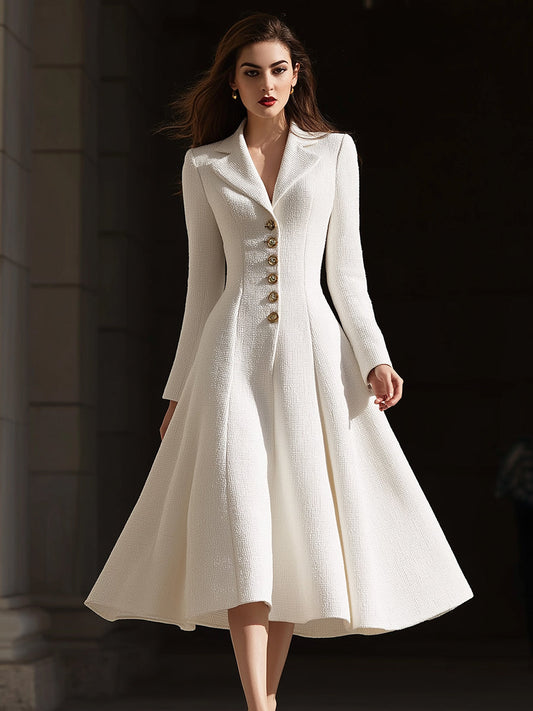 Ivory Tweed Button-Down Midi Dress With Patch Pockets