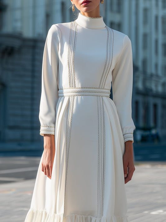 Ivory Long-Sleeve Asymmetric Hem Midi Dress