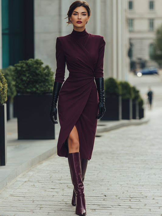 Cozy Cable Knit Sweater Dress With V-Neck And Flare Hem