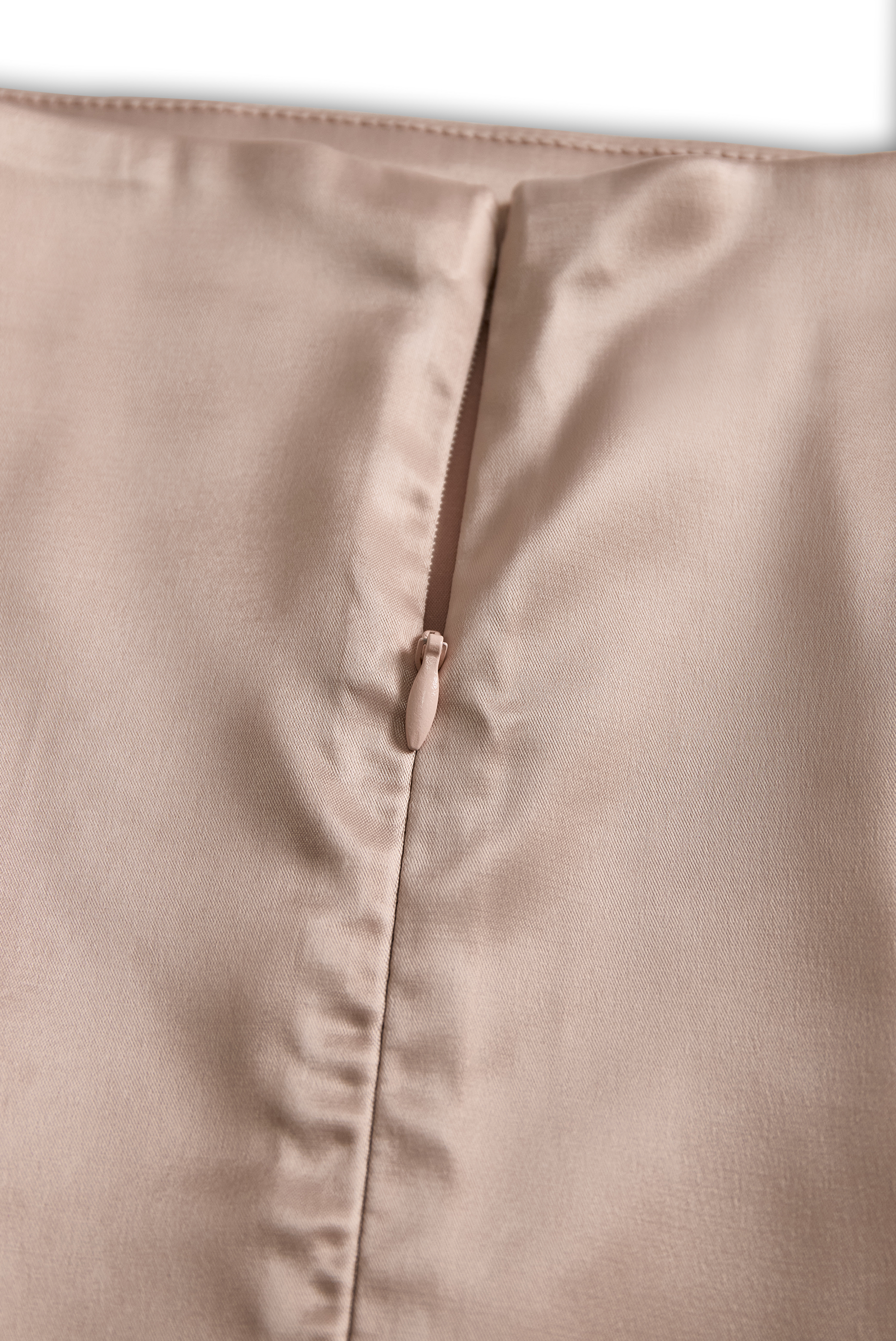 Champagne Satin Square Neck Mini Dress with Long Sleeves