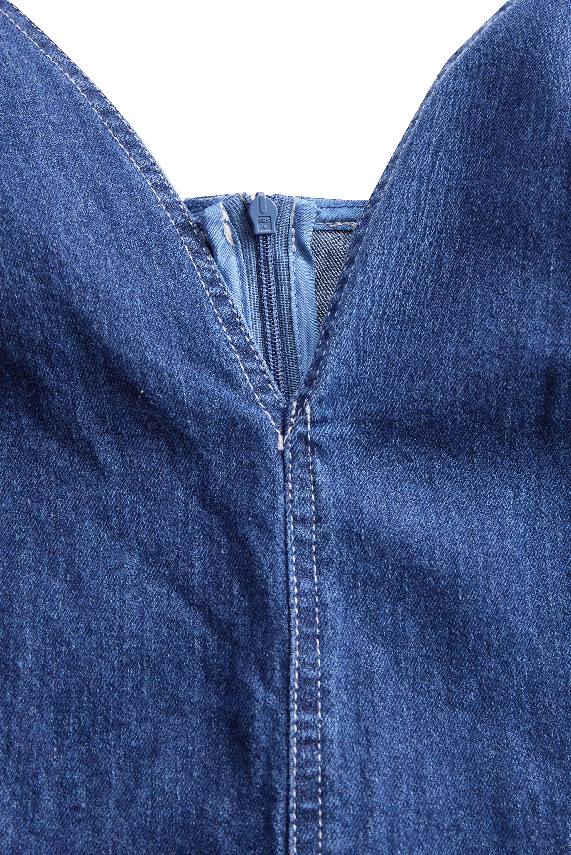 The figure-enhancing fit makes it a standout piece for summer dates, rooftop gatherings, or a confident day in the city.The premium denim fabric offers structure without sacrificing comfort, while visible stitching adds a tailored finish. Team it with strappy heels or chunky boots to create contrasting moods.